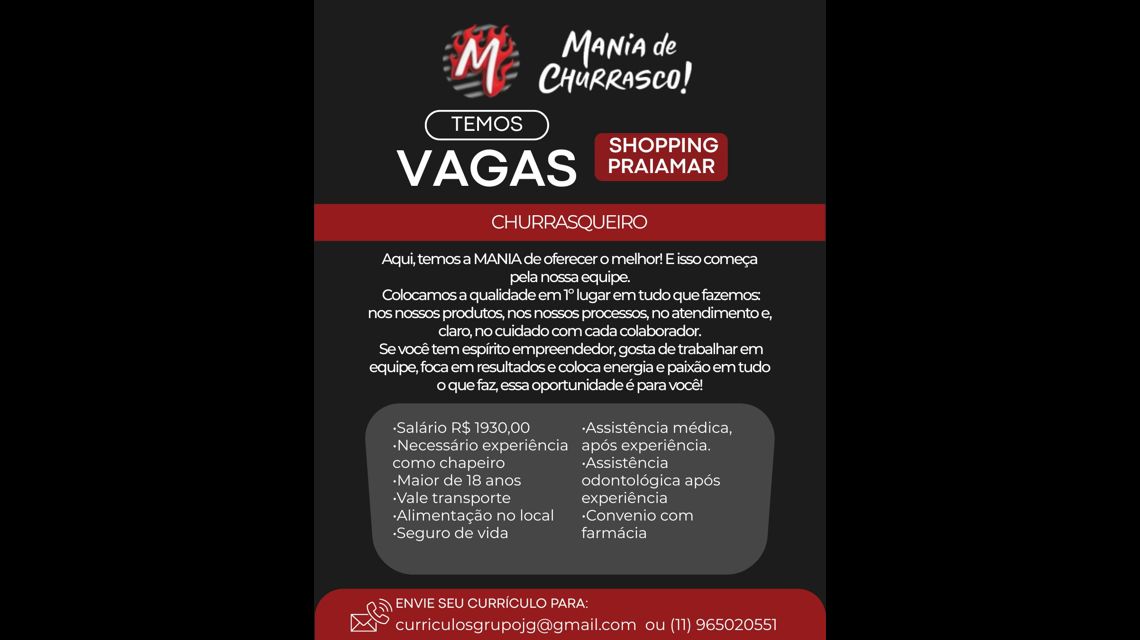A Mania de Churrasco oferece um ambiente de trabalho acolhedor e oportunidades de crescimento profissional.